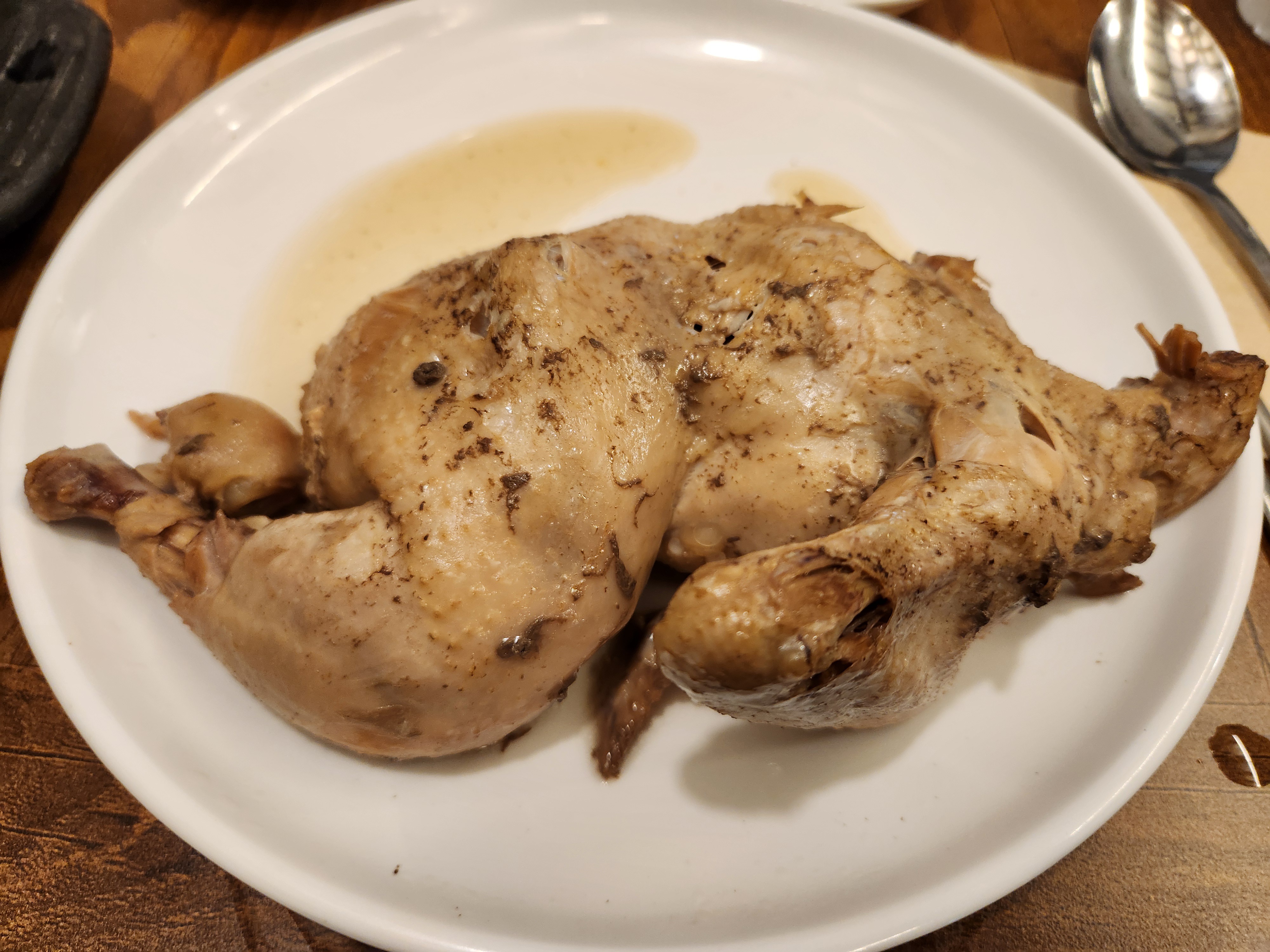 그리고 닭을 뚝배기 육수에 넣어서 먹으면 됩니다.